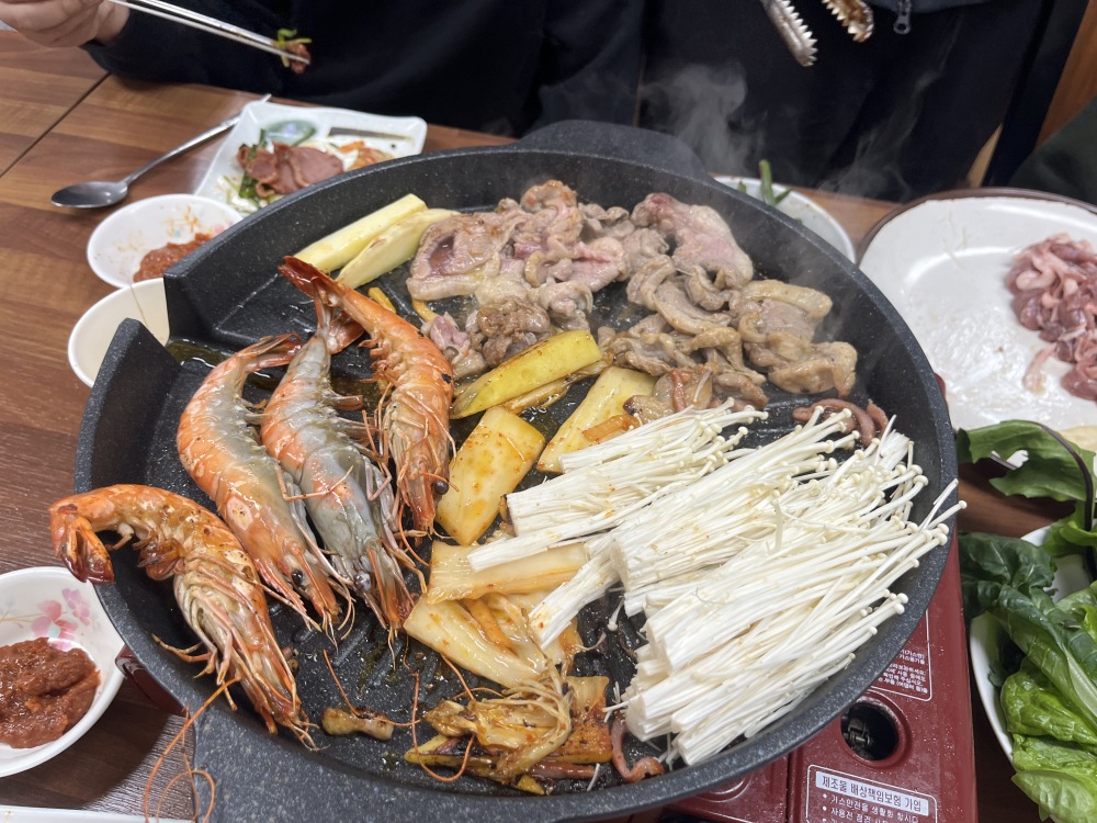 한결회에서 오리바베큐와 새우구이를 해주셨습니다.