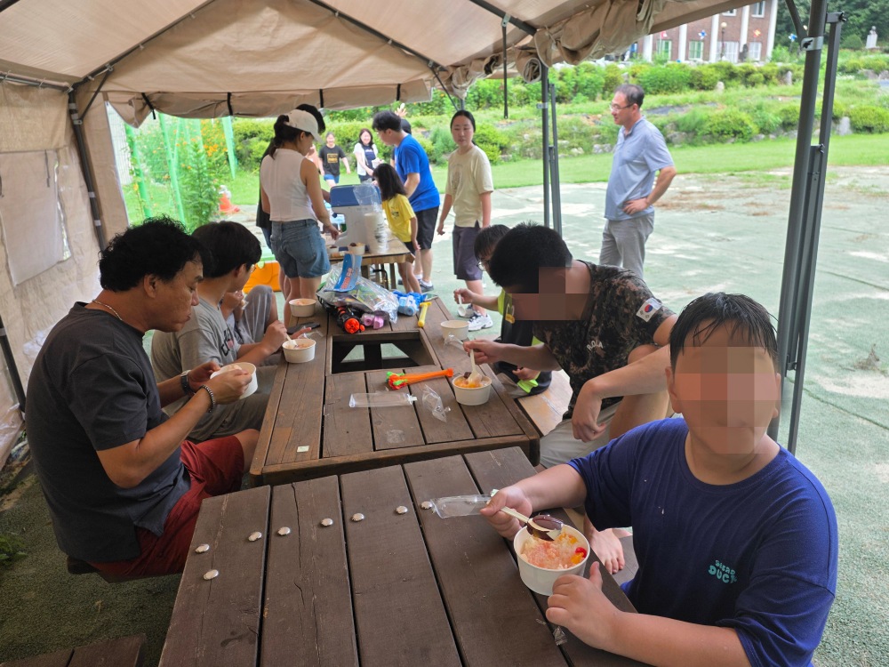계곡 물놀이를 한 후 시원한 과일 빙수를 준비해 주셔서 아이들 모두 신나고 즐거운 시간을 보냈습니다.
