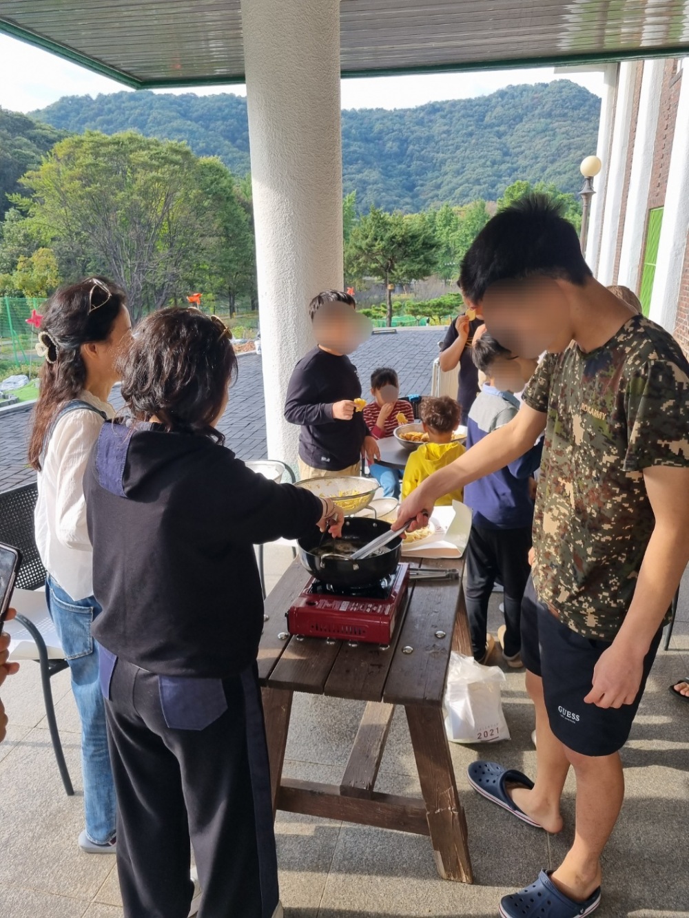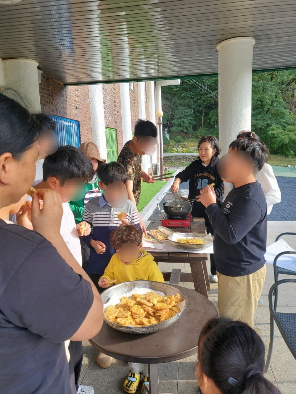 텃밭에 심었던 고구마를 수확한 후 봉사자분들과 함께 고구마를 이용하여 전과 튀김을 만들어 보았습니다.